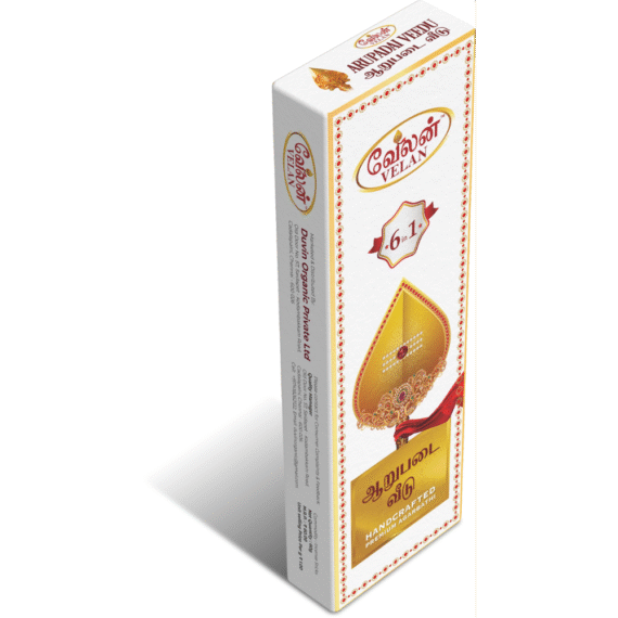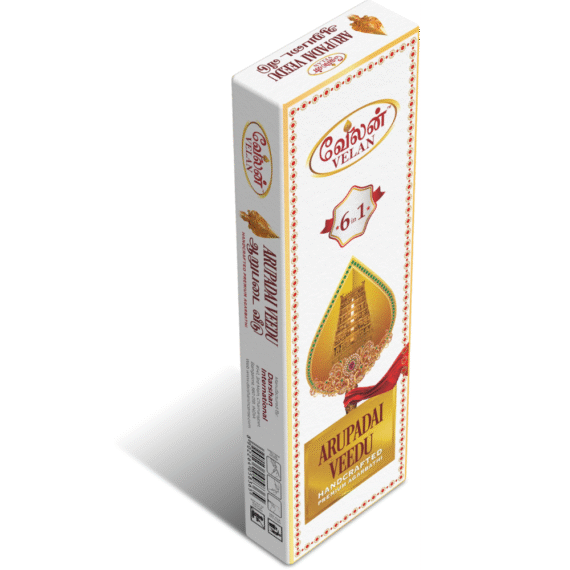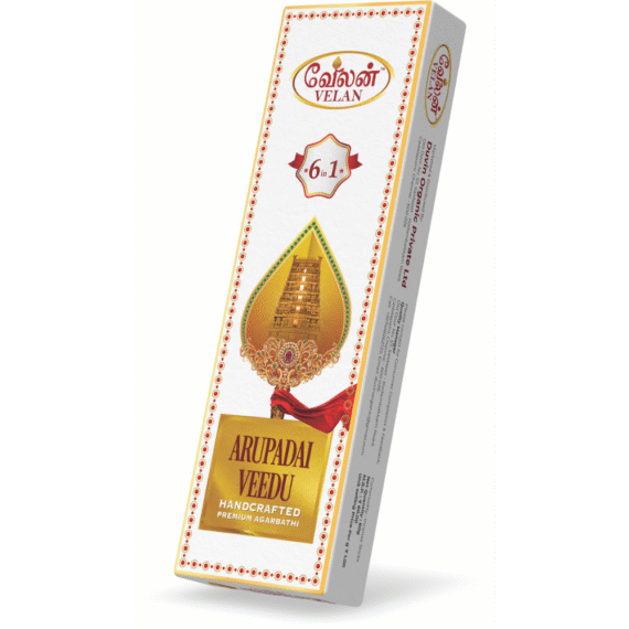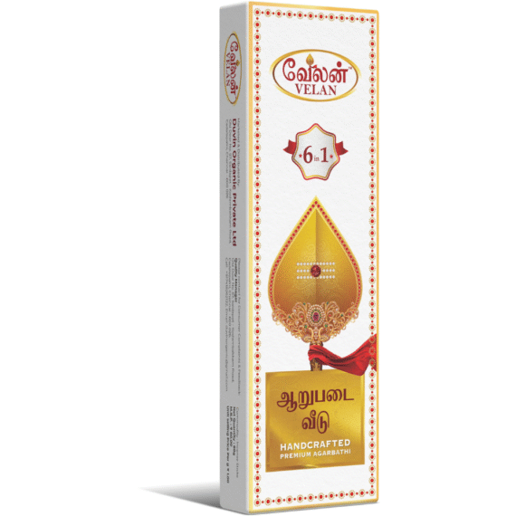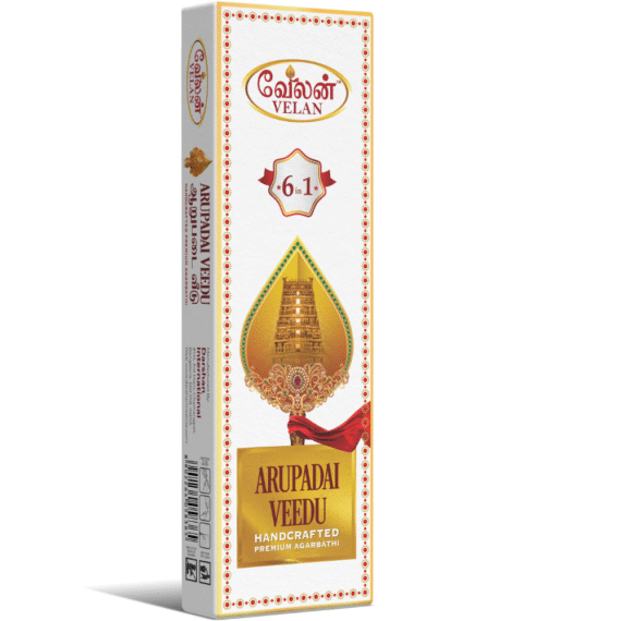 Experience the divine aroma of Murugan Temples with Velan Arupadai Veedu Premium Masala Agarbathi 6-in-1 pack. This exclusive combo contains 6 distinct herbal fragrances incense sticks inspired by Lord Murugan’s sacred abodes: Thiruchendur, Thiruparankundram, Swamimalai, Thiruthani, Palani, and Pazhamudircholai. Each fragrance is crafted to evoke the spiritual ambiance of these revered shrines.